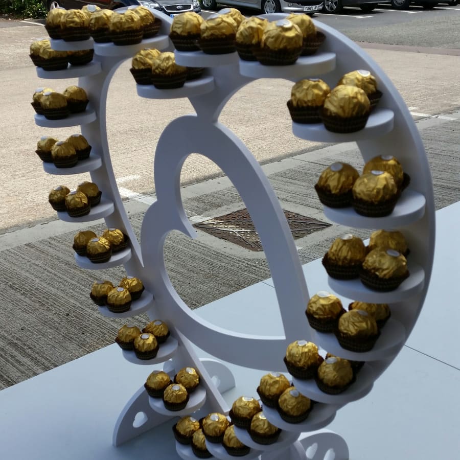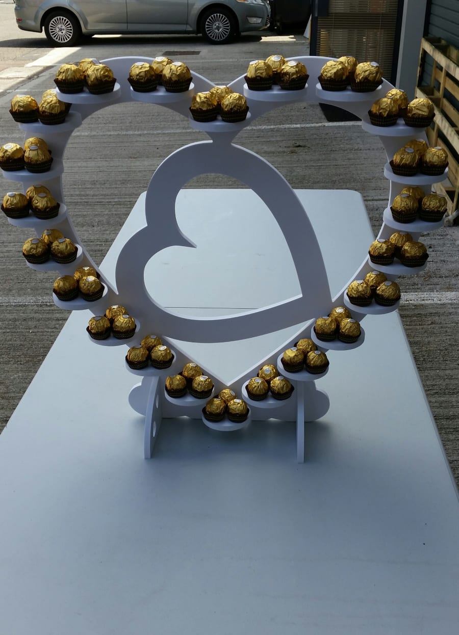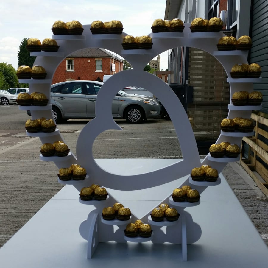 Manufactured using high grade food grade plastic, our white heart shaped Ferrero Rocher Stand holds up to 62 individual Ferrero Rocher chocolates, although more chocolates can be supplied to keep the stand topped up for your guests to enjoy!!